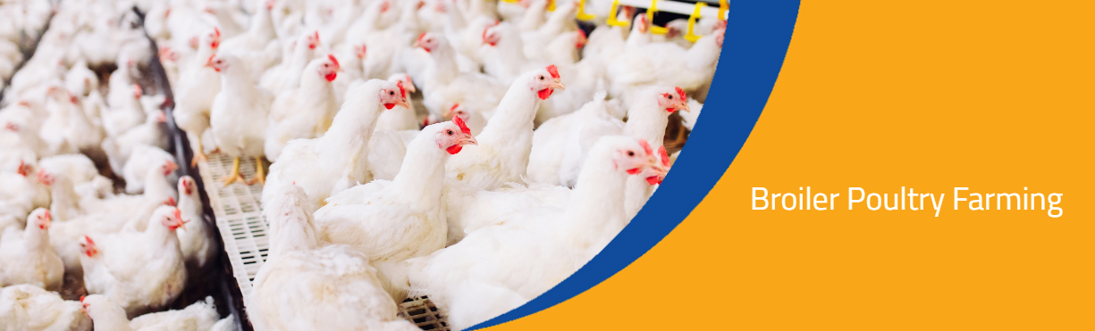 Broilers are not raised in cages. They are raised in large, open structures known as grow out houses. A farmer receives the birds from the hatchery at one day old. A grow out consists of 5 to 9 weeks according to how big the kill plant wants the chickens to be. These houses are equipped with mechanical systems to deliver feed and water to the birds. They have ventilation systems and heaters that function as needed. The floor of the house is covered with bedding material consisting of wood chips, rice hulls, or peanut shells. In some cases they can be grown over dry litter or compost. Because dry bedding helps maintain flock health, most growout houses have enclosed watering
